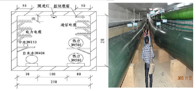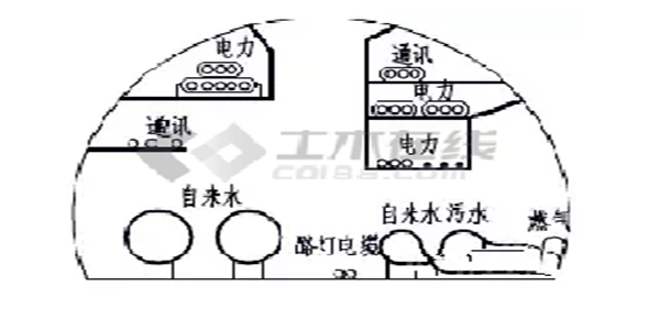 一般設置于道路中央下方或道路紅線外綜合管廊帶內,主要輸送原站(如自來水廠、發電廠、燃氣制造廠等)到支線綜合管廊,其一般不直接服務沿線地區。其主要收容的管線為電力、通訊、自來水、燃氣、熱力等管線,有時根據需要也將排水管線收容在內。在干線綜合管廊內,電力從超高壓變電站輸送至一、二次變電站,通訊主要為轉接局之間的信號傳輸,燃氣主要為燃氣廠至高壓調壓站之間的輸送。干線綜合管廊的斷面通常為圓形或多格箱形,綜合管廊內一般要求設置工作通道及照明、通風等設備。干線綜合管廊的特點主要為:穩定大流量的運輸、高度的安全性、內部結構緊湊、兼顧直接供給到穩定使用的大型用戶、一般需要專用的設備、管理及運營比較簡單。